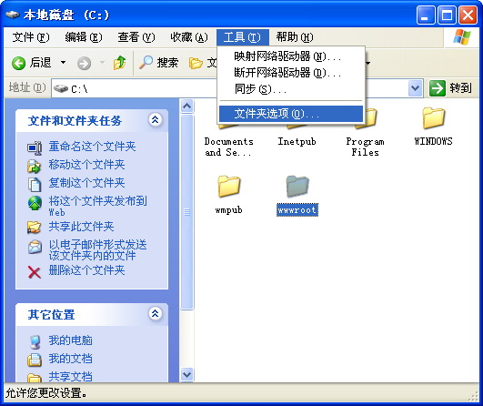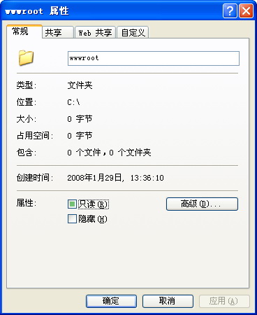 在Windows XP簡體專業(yè)版下設(shè)置IIS的權(quán)限(如果網(wǎng)站所在的分區(qū)不是NTFS文件系統(tǒng)就不用設(shè)置權(quán)限,在分區(qū)的屬性里可以查看是什么文件系統(tǒng)),對于Windows 2000/2003同樣適用。以C:\wwwroot文件夾演示。