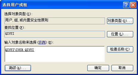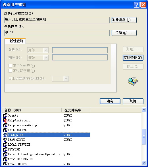 選擇以“IUSR_”開頭的用戶名稱,名稱的后段是你的計算機名稱(圖中我的計算機名稱是QIUYI),如IUSR_QIUYI。點擊“確定”。